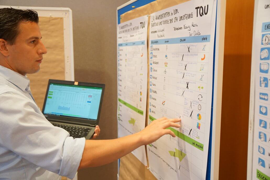 In einem straffen Zeitplan berichtete Veranstalter und LPA Projektleiter Elmar Zeller konkret über seine Projekterfahrungen mit der Methode und band die Anwender direkt in seinen Vortrag ein. Die Anwender wurden aufgefordert, ihre LPA-Umsetzung im Unternehmen kritisch unter die Lupe zu nehmen und die wichtigsten Erfolgskriterien zu bewerten.